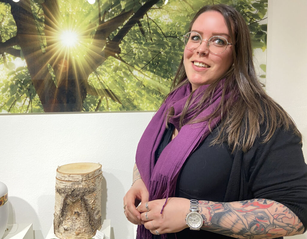 Mit ihren bunten Tattoos und Piercings sieht Christina Klaffus aus wie die Sängerin einer Rockband. Wer die Bestatterin in der Fürstenfeldbrucker Filiale von „Hanrieder“ trifft, der versteht unmittelbar, wie sehr die Branche sich gewandelt hat.