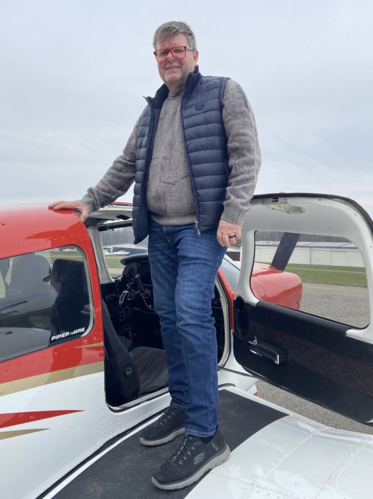 Kurz nach unserem Treffen in der Firma hat der selbstfliegende Kramer einen Platz in seiner Piper PA-28 frei, darf ich beim „Verfliegen der Asche“ dabei sein.