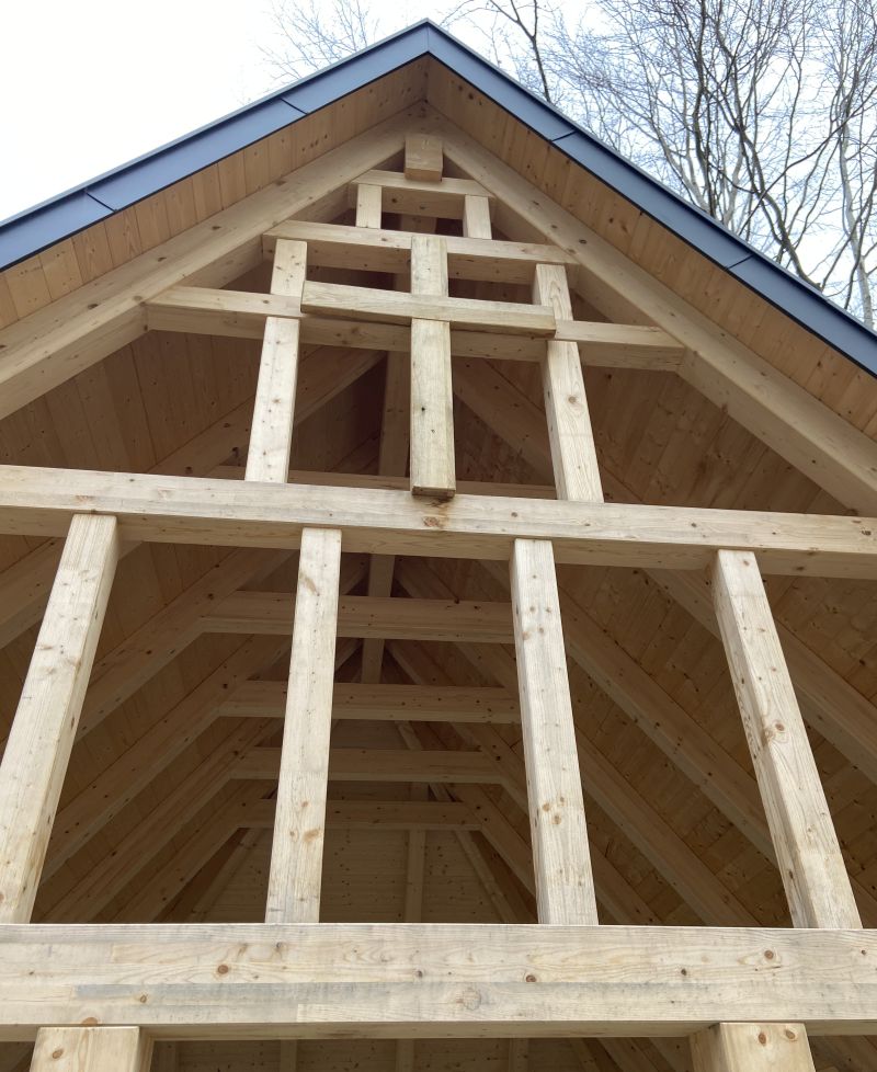 Hackschnitzelwege führen zwischen den Bäumen hindurch. Auf Lichtungen liegen Findlinge, dazwischen stehen Bänke. „Hier ist jeder willkommen, unabhängig von Wohnort oder Konfession – auch ohne religiöse Zugehörigkeit“, betont Gräfin von Spreti. Am überdachten Andachtsplatz zeigt sie hoch ins Gebälk. Dort wurde ein schlichtes Holzkreuz so dezent eingefügt, dass es erst beim zweiten Hinsehen auffällt.
